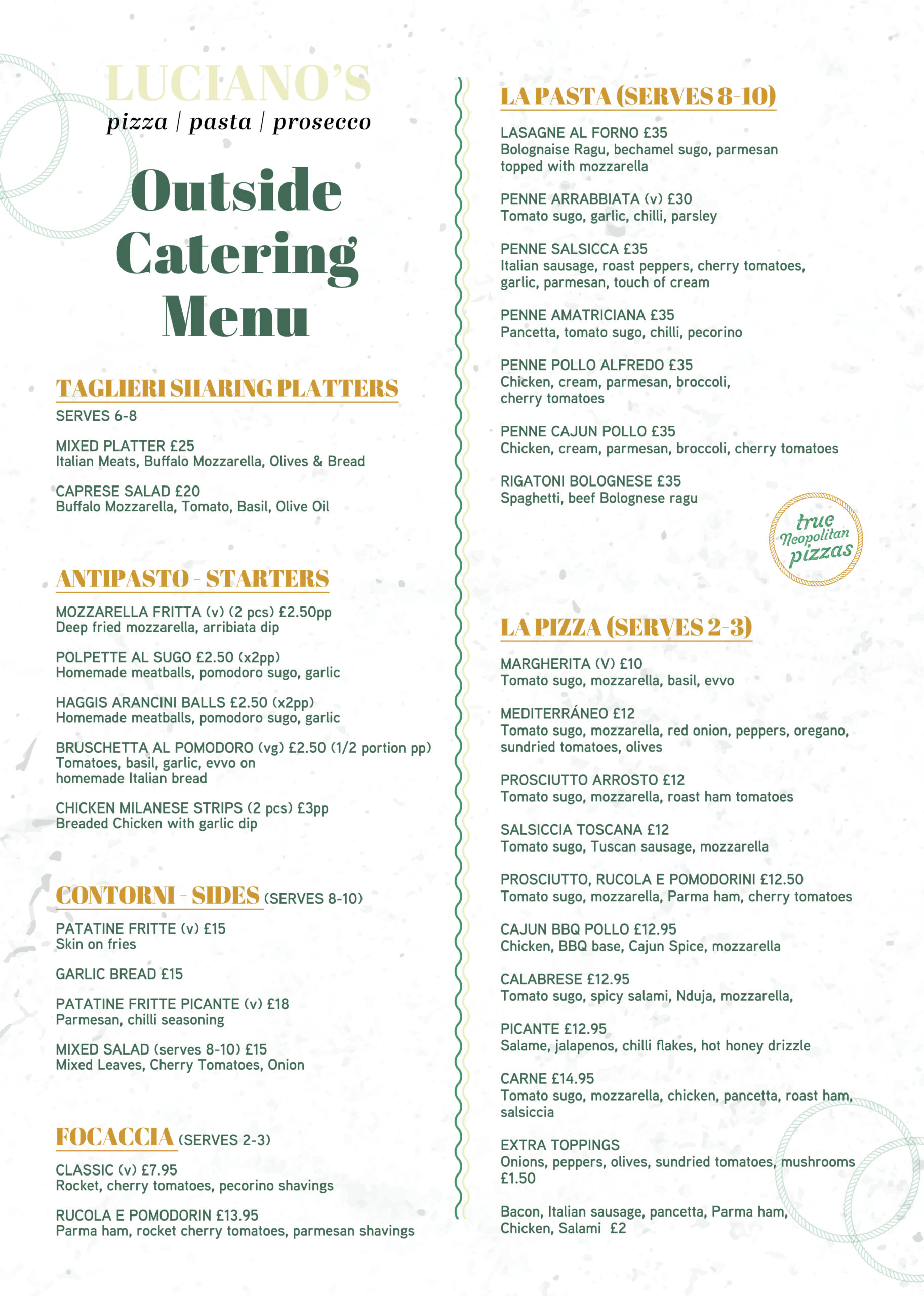 Our handcrafted Neapolitan pizzas, fresh pastas, and delicious sides are perfect for feeding a crowd—made with the same love and quality we serve in our restaurant.